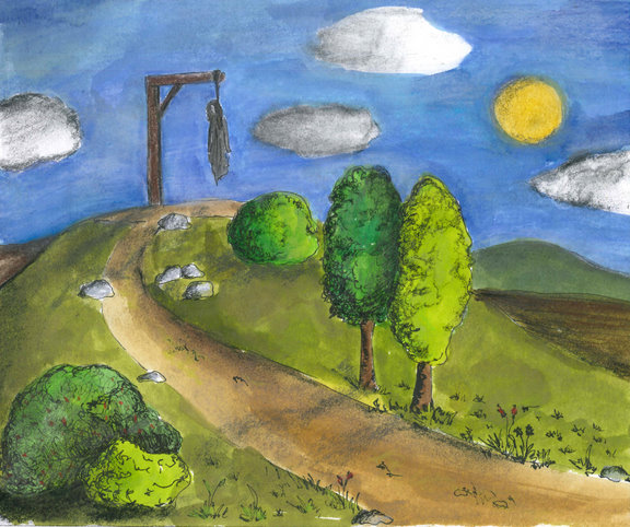 K bývalému šibeničnímu vrchu se váže hned několik pověstí. Jedna z nich vypráví o dívce, která byla neprávem odsouzena k trestu smrti. Jejím posledním přáním bylo zasadit na místě stromek. K údivu všech přihlížejících jej však zasadila obráceně, tedy větvemi do země a kořeny vzhůru. Pravila, že pokud se strom na jaře zazelená, pak je to důkaz její neviny. A tak se opravdu stalo, stromek se na jaře zazelenal.