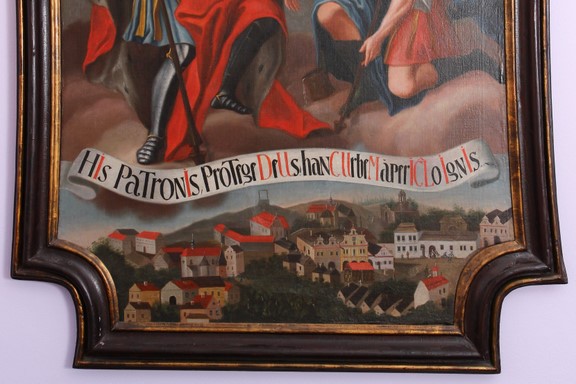 Fotografie 1 – Votice na votivním obrazu z roku 1765 (nad městem je vidět šibenice)