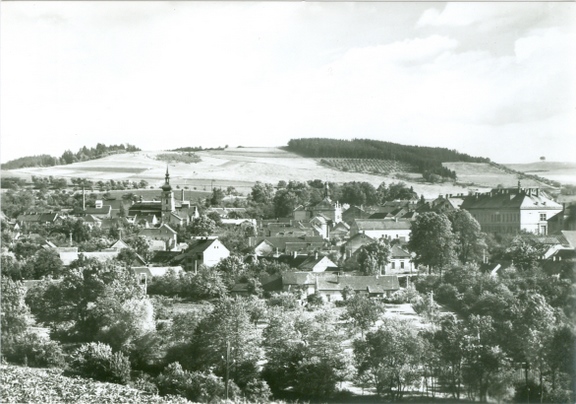 Fotografie 2 – Pohled na Votice kolem roku 1965 (vpravo nahoře je vidět osamělý javor)